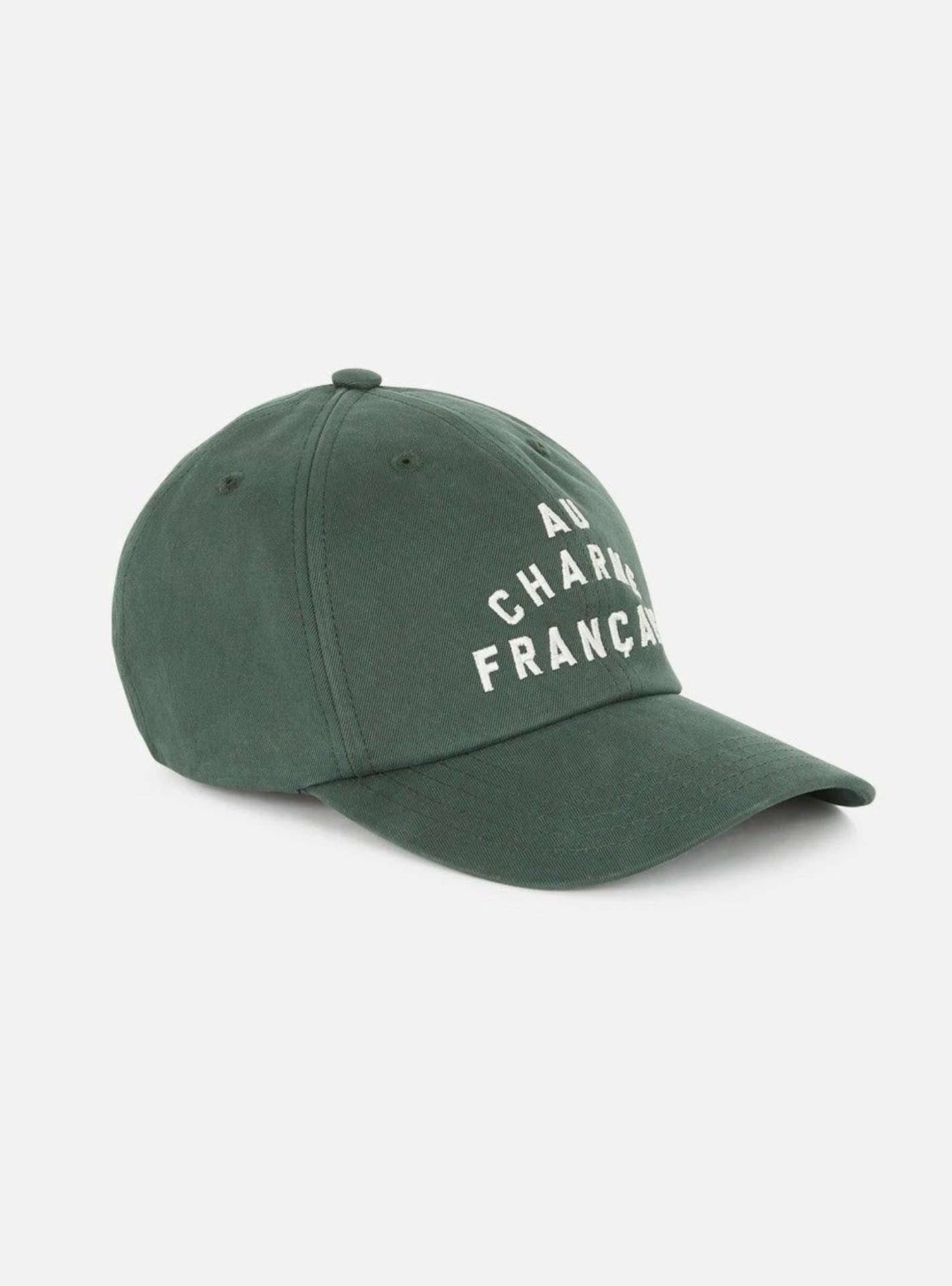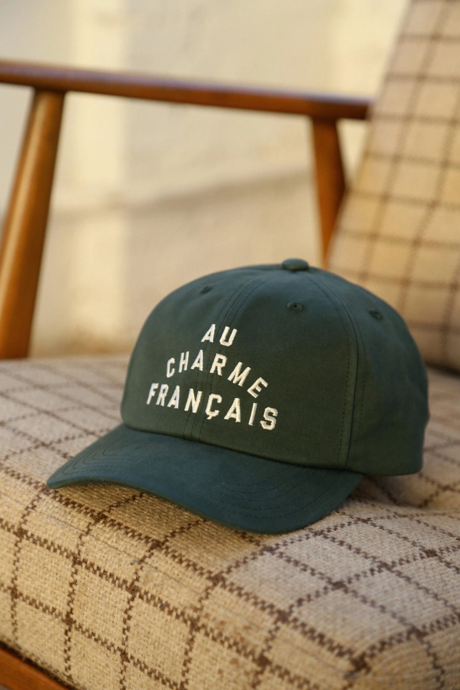 La casquette Pete est la casquette essentielle avec sa broderie Au Charme Français. Elle est ici proposée dans un coton couleur Vert Menthol.