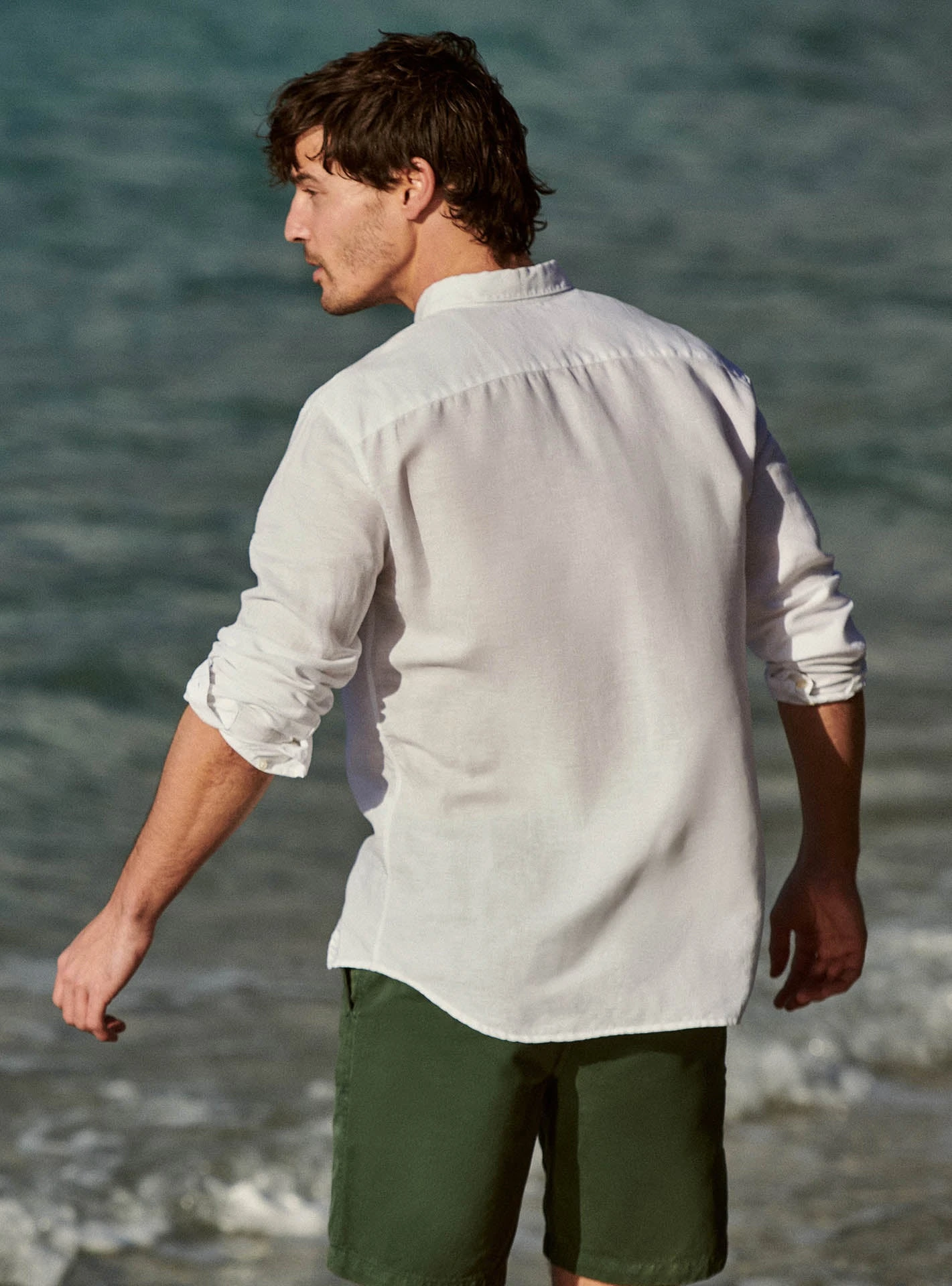 Avec son petit col français et sa coupe ajustée, la chemise Mercer est une réécriture de la chemise preppy. Elle prête ses lignes nettes et minimales à une toile de lin aérienne.