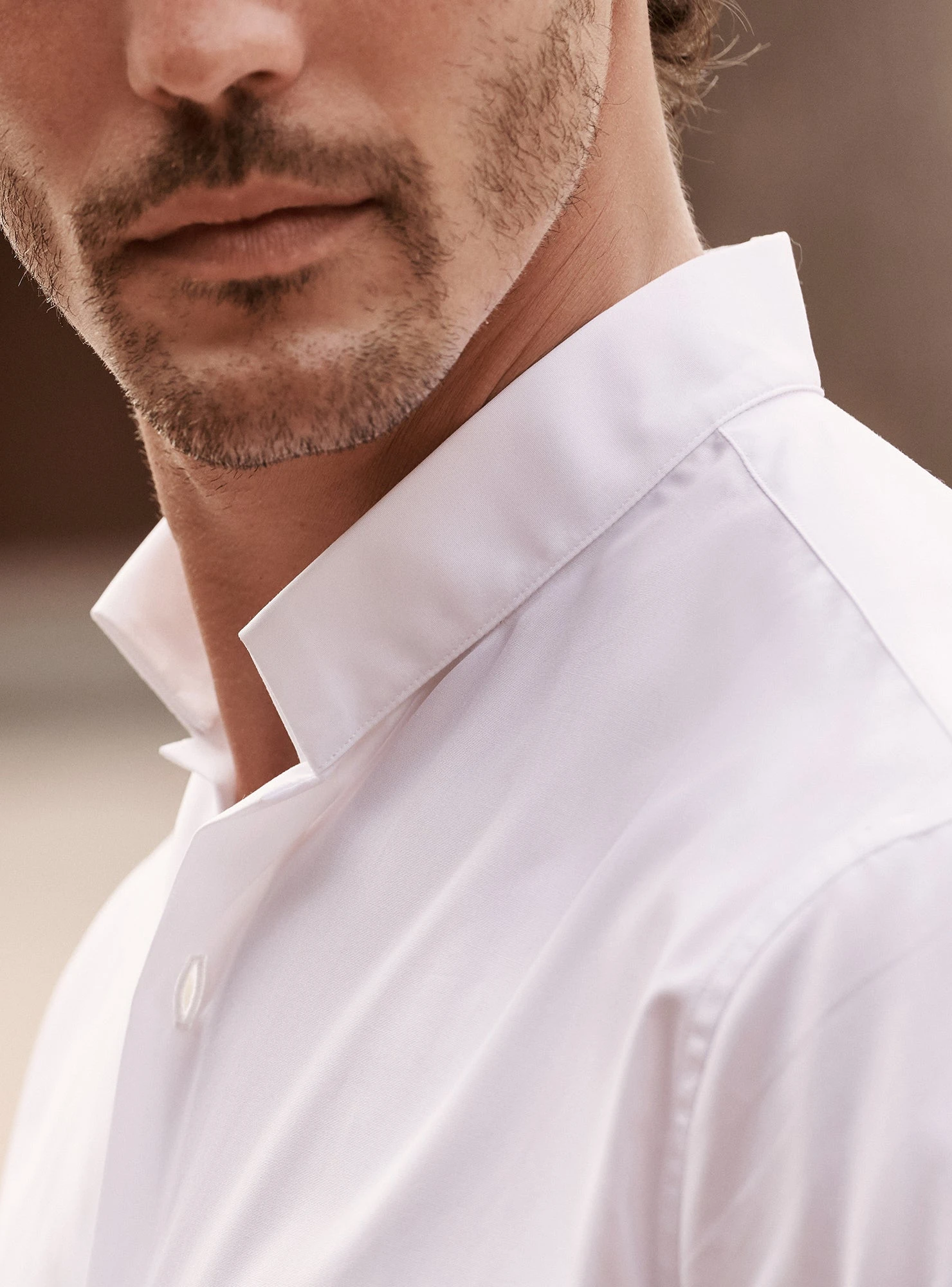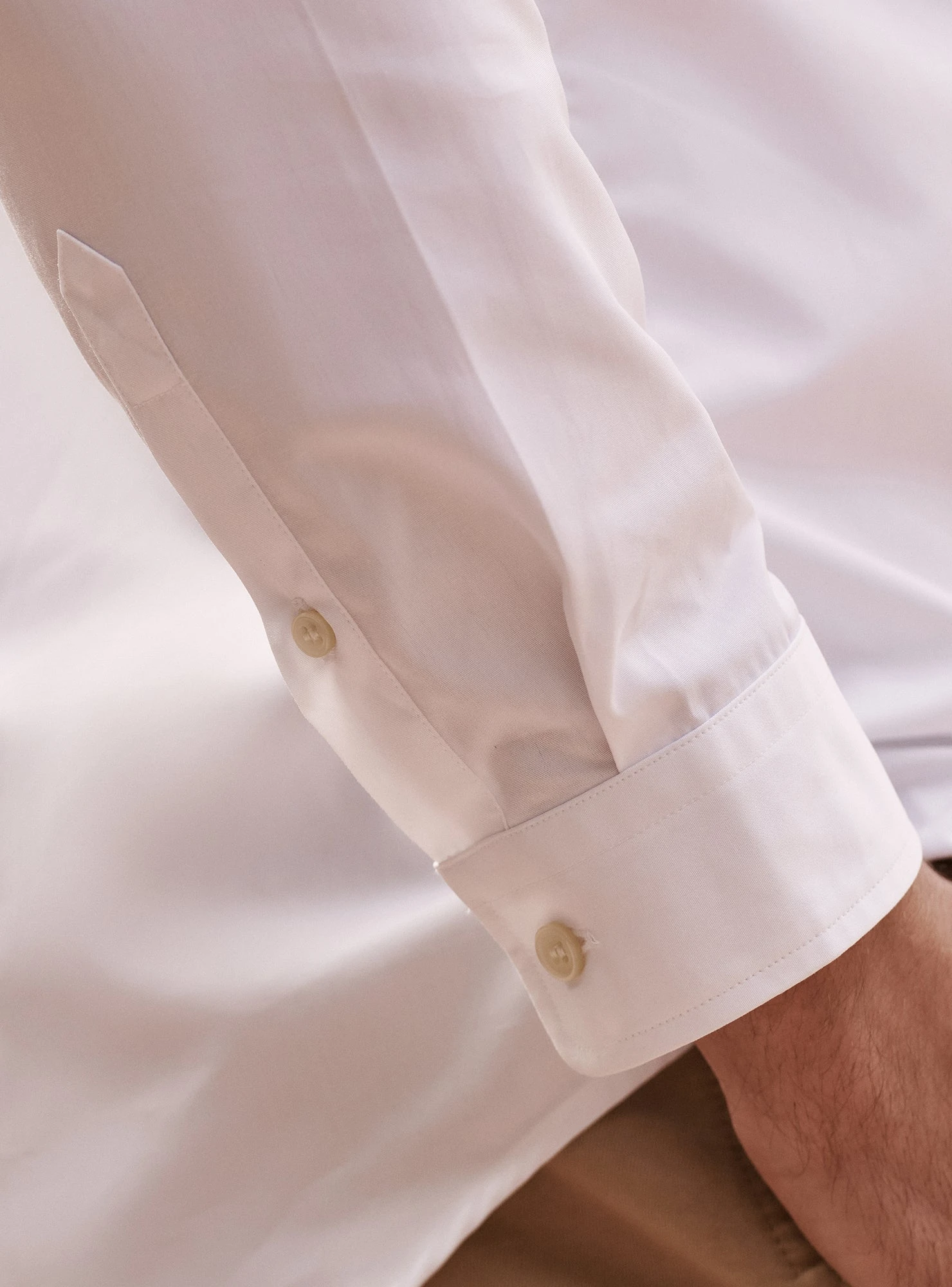 La chemise en popeline de coton est tissée serrée avec une armure unie qui lui confère un tombé parfait. En version blanche et légèrement ajustée, la chemise Jill saura être sophistiquée sans tomber dans le trop formel.