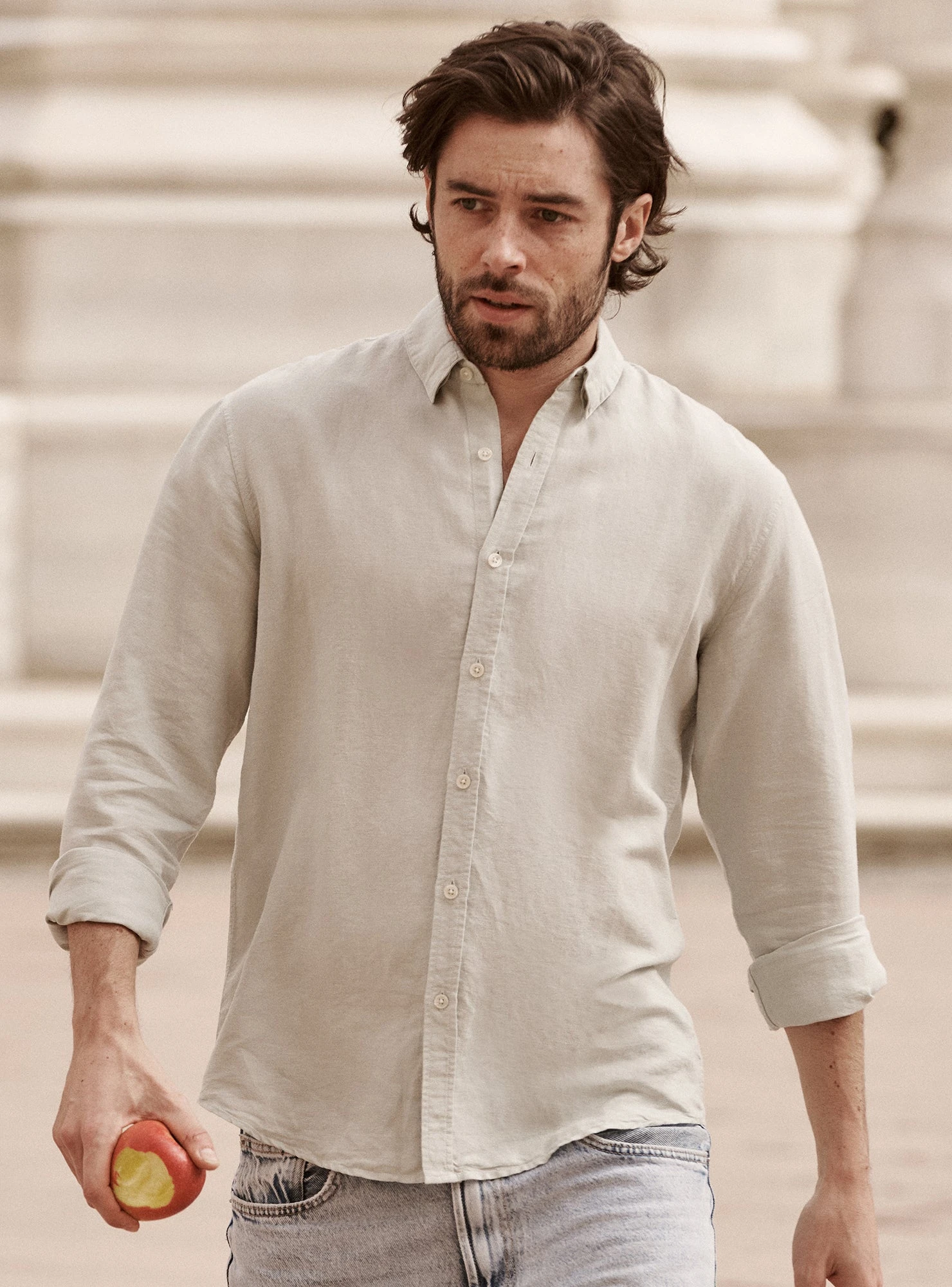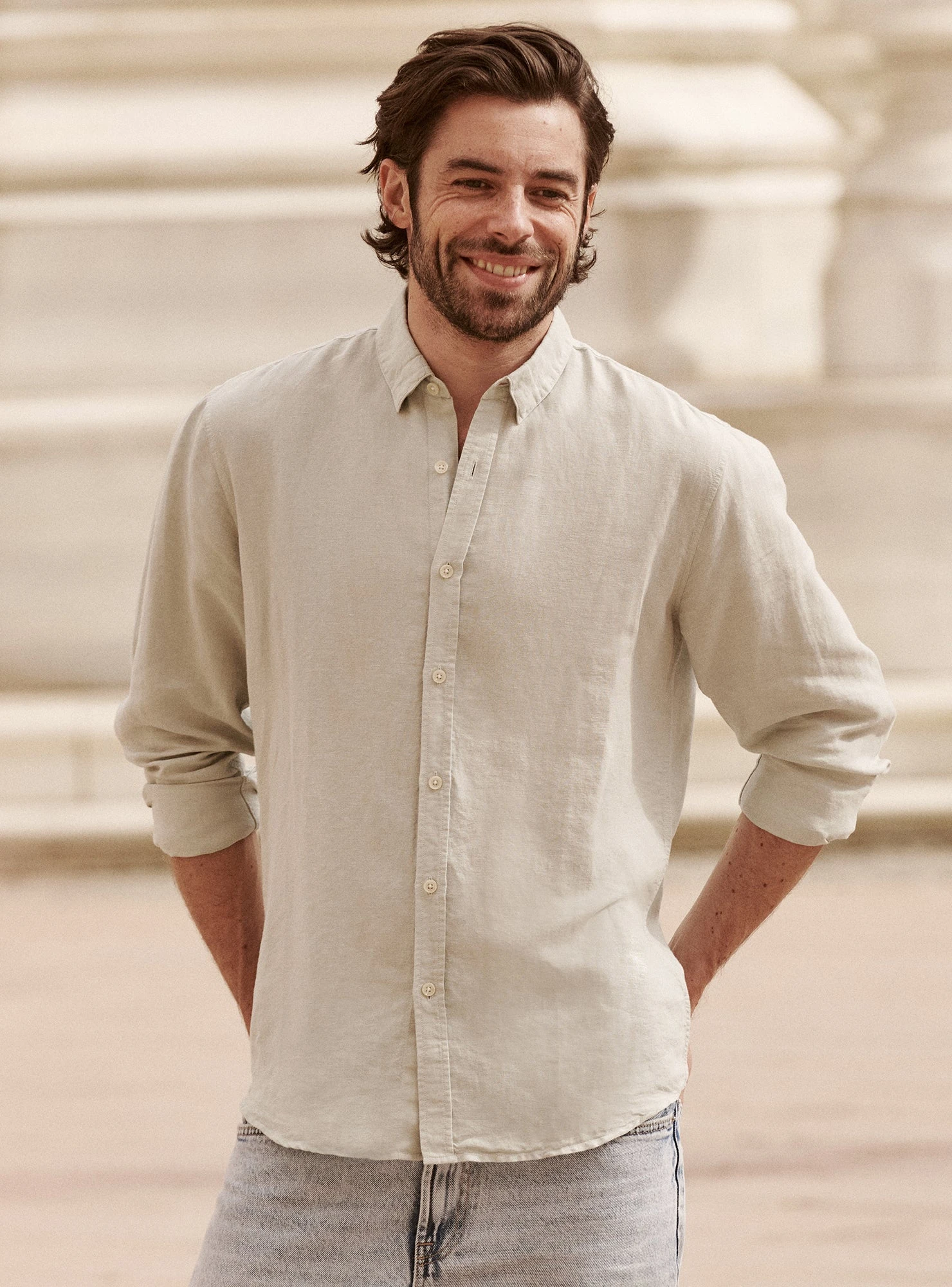 Must-have de la mi-saison, la chemise Mercer est confectionnée dans un mélange lin et coton et se distingue par sa légèreté. Sa coupe semi-ajustée fait d’elle une pièce à la fois contemporaine et intemporelle qu’on ne veut plus quitter.