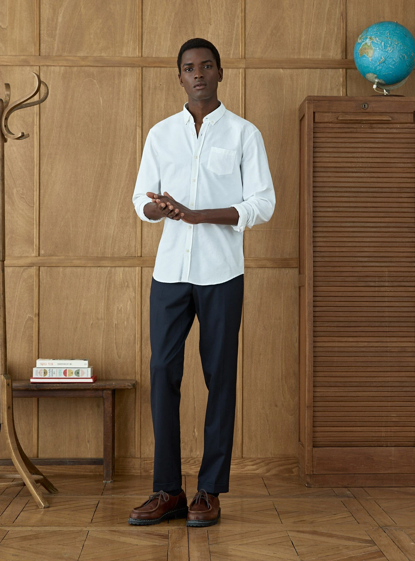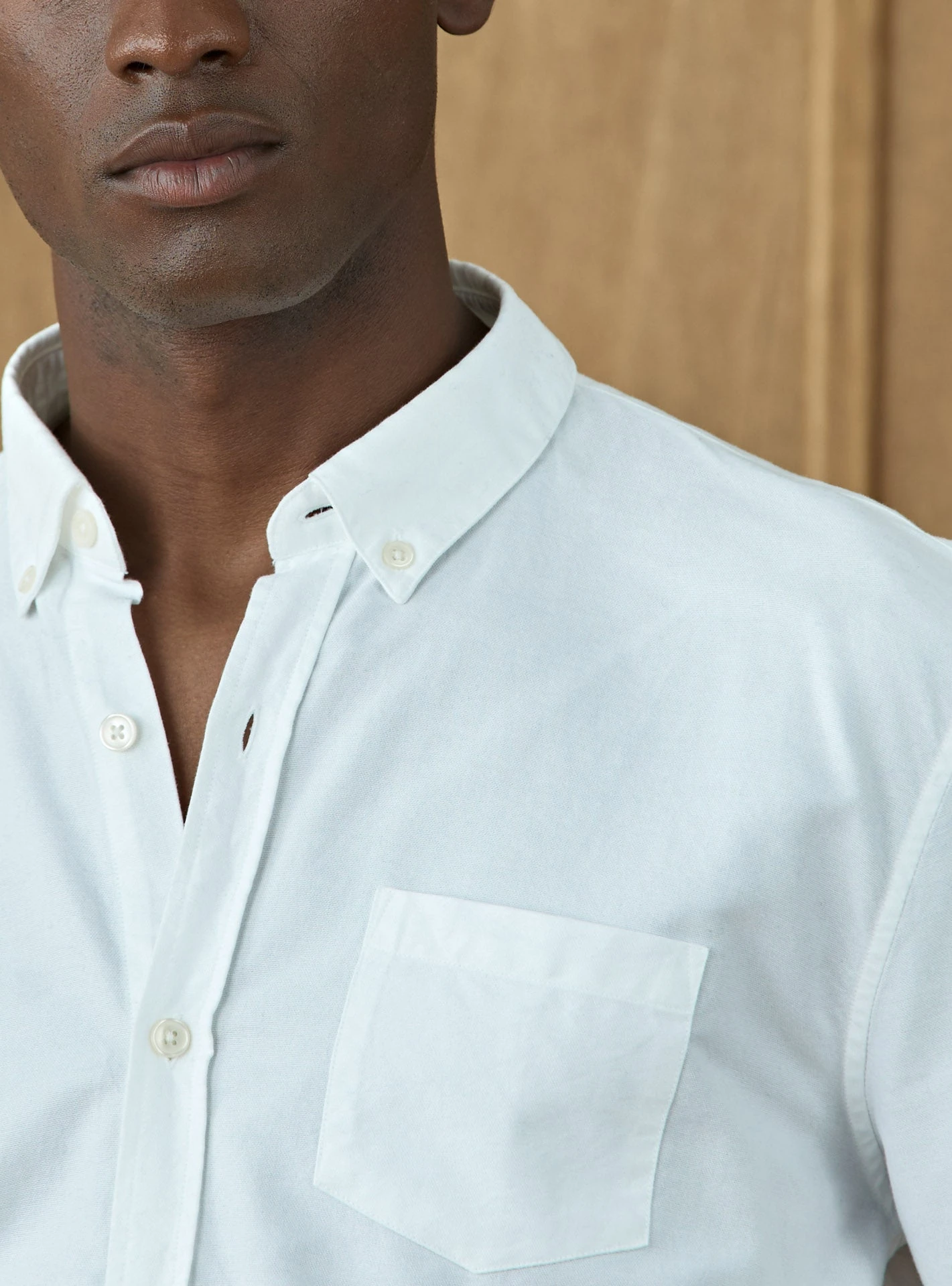Le chemise Tribeca blanche se présente avec une coupe ajustée, un col français boutonné et une poche plaquée qui en font un modèle à l’allure rétro-moderne.