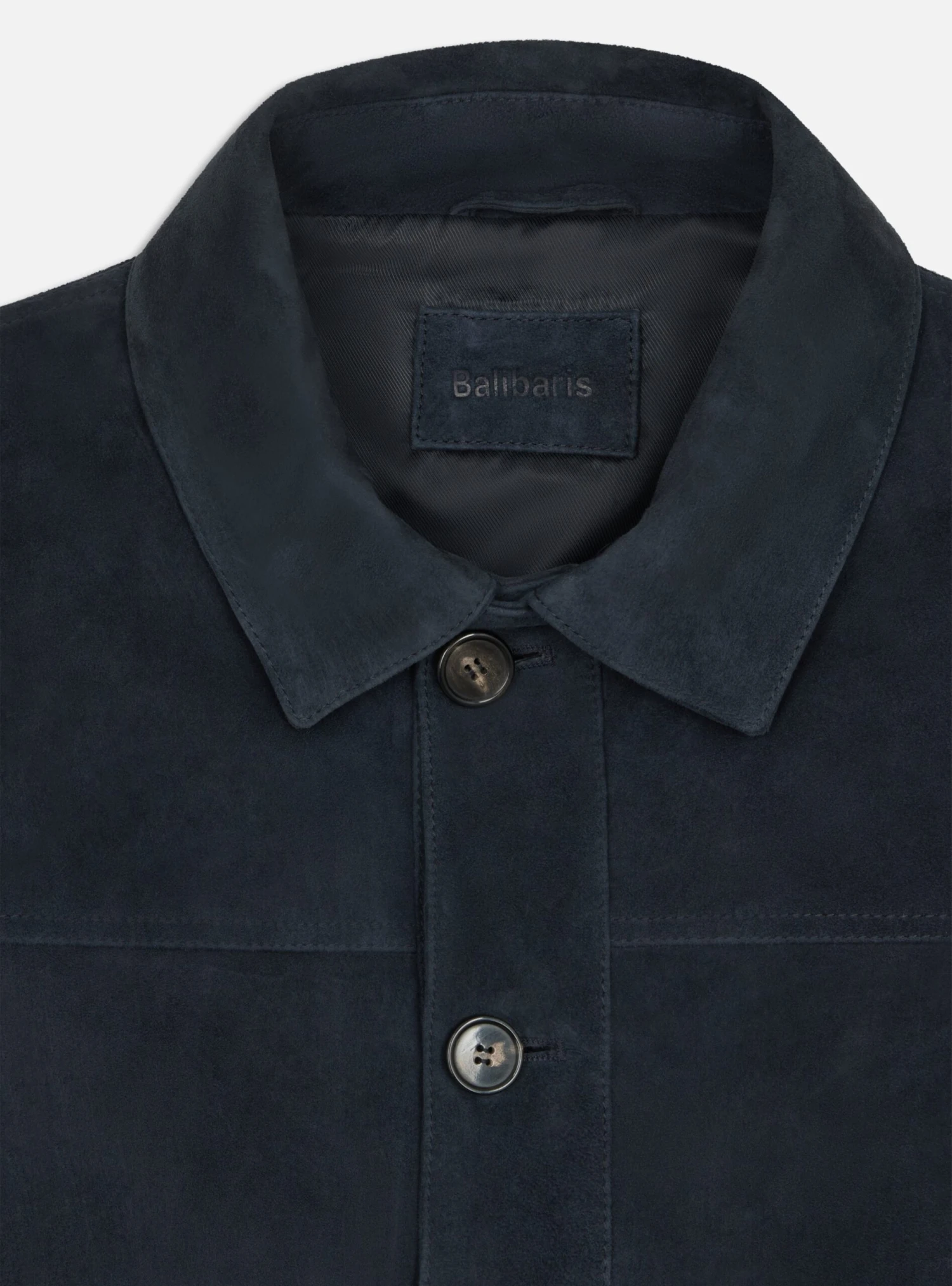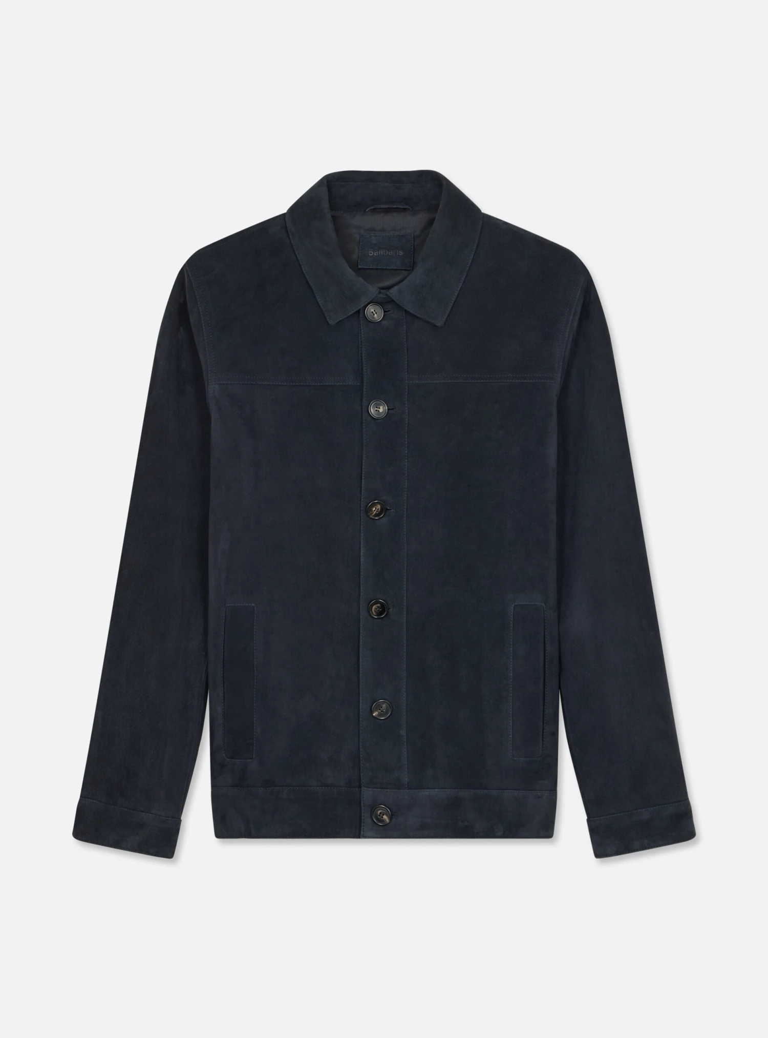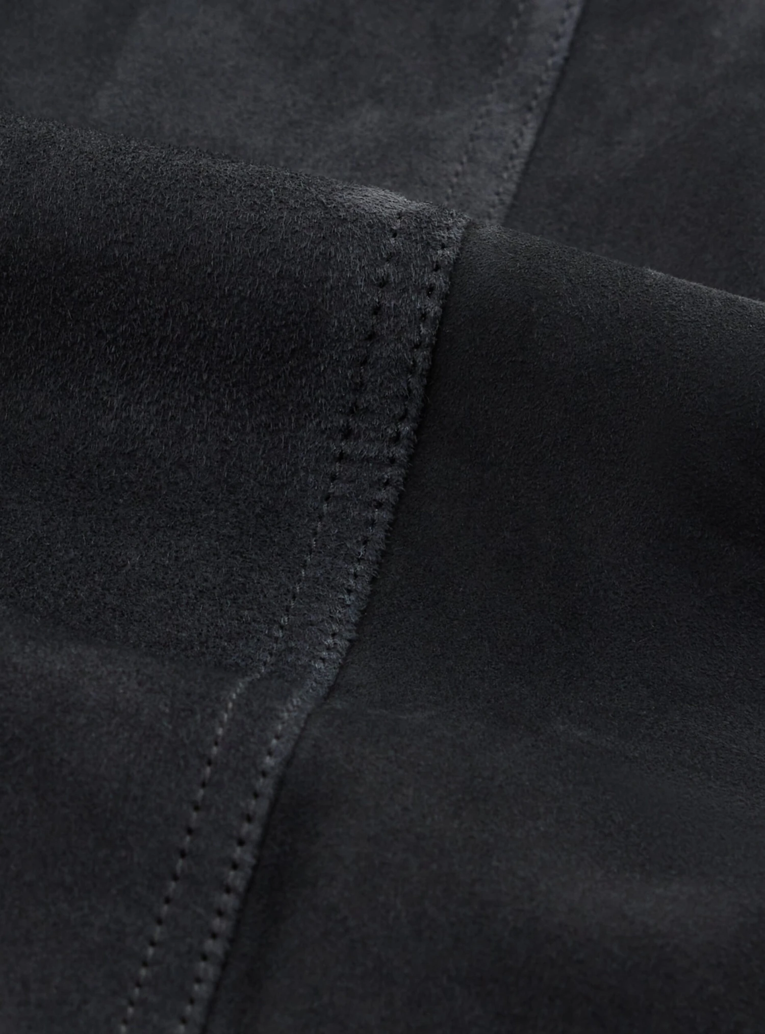 Déclinée dans une teinte bleu nuit, le cuir Simon emprunte à la veste workwear ses lignes droites.