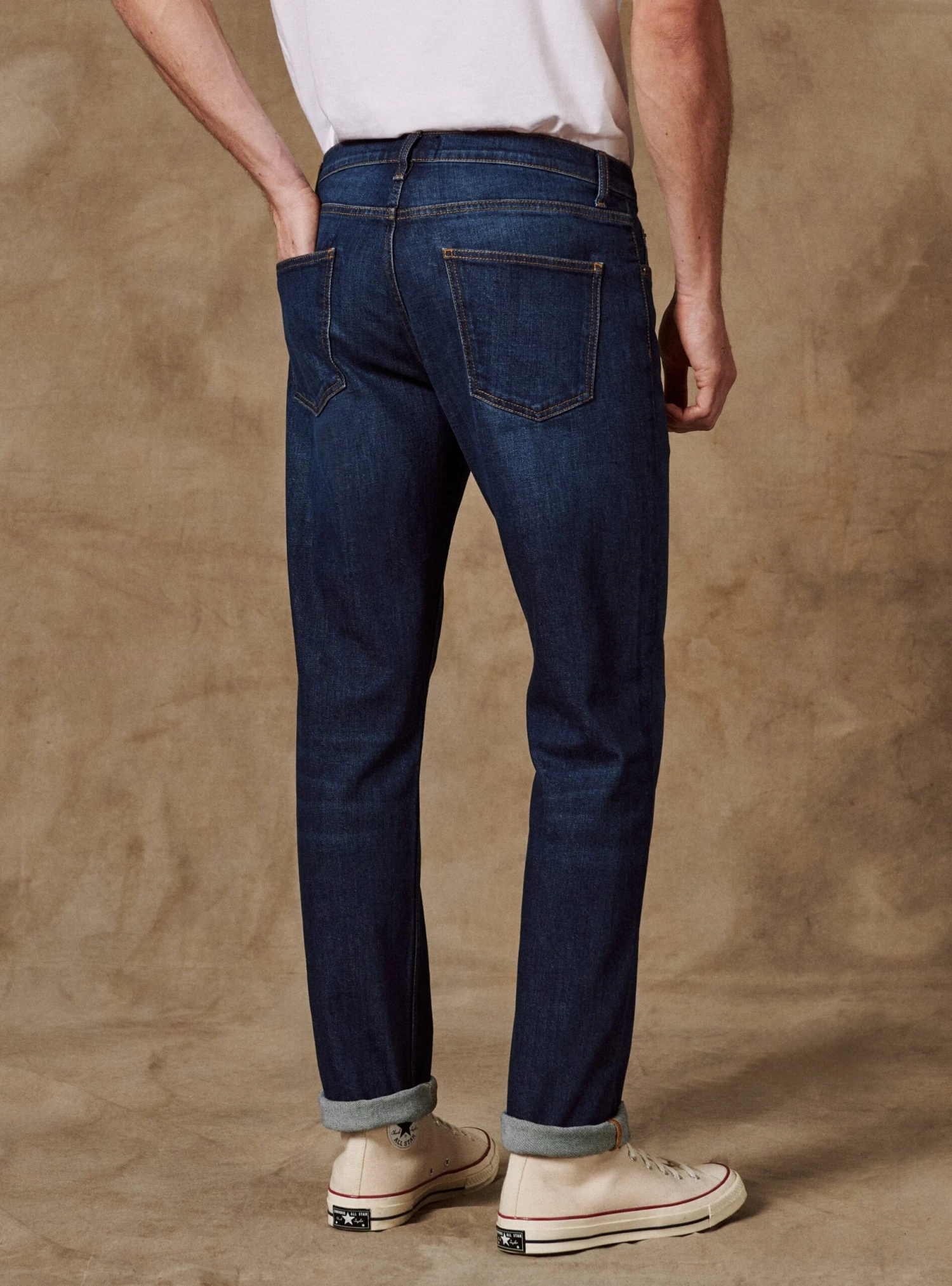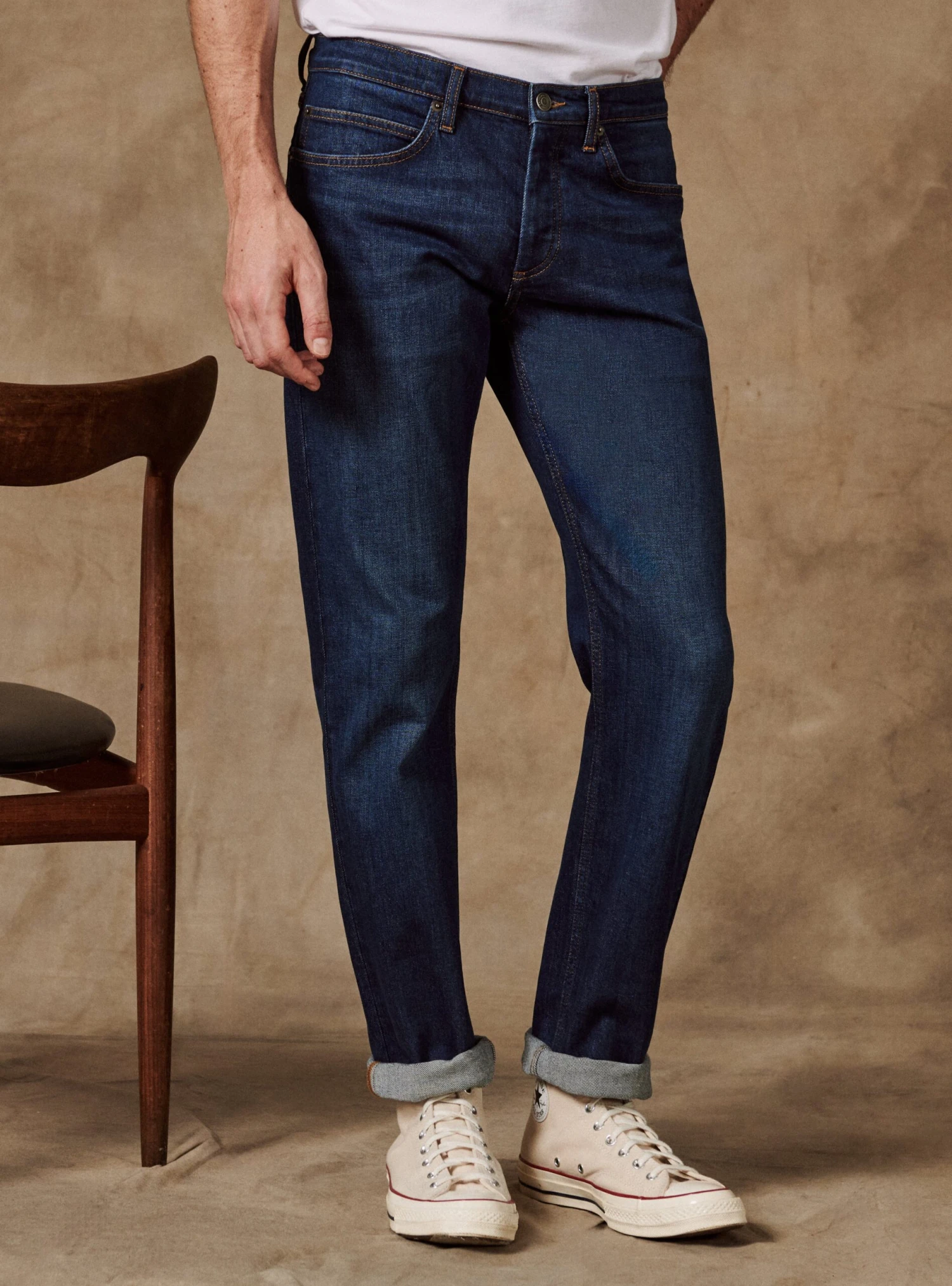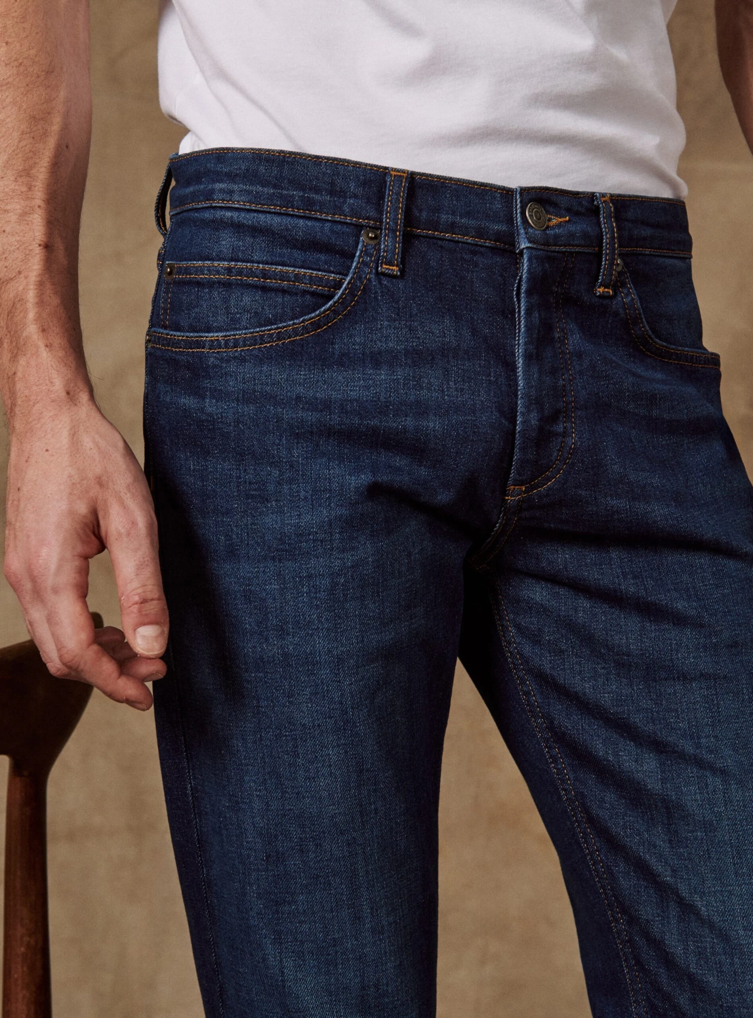 Confectionné dans un denim de teinte blue stone, le modèle Léo affiche une taille mi-haute élégante et une coupe ajustée.