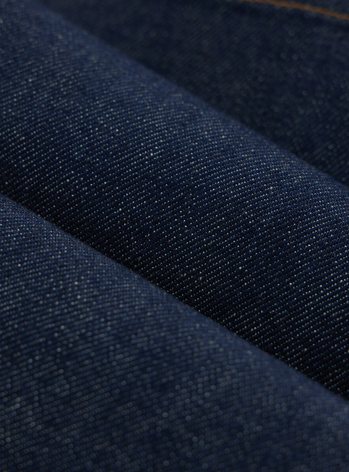Confectionné dans un denim brut stretch, le modèle Léo affiche une taille mi-haute élégante et une coupe ajustée.