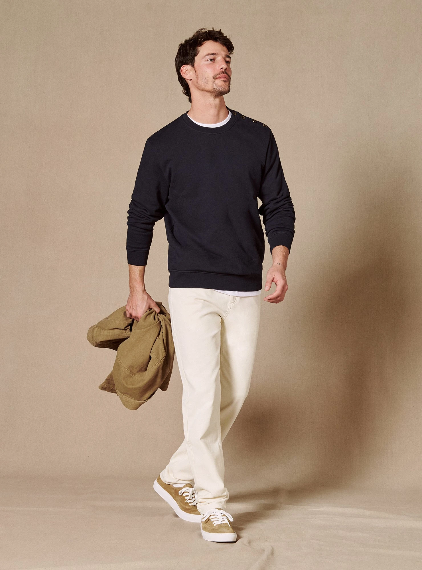 Initialement conçu comme vêtement de travailleur puis popularisé, le jean est devenu une pièce essentielle de la mode masculine. Confectionné avec un savoir-faire spécifique au sein d’ateliers italiens, le modèle Joe s’adapte à toutes les silhouettes et son denim écru en coton est aussi résistant que facile à associer.