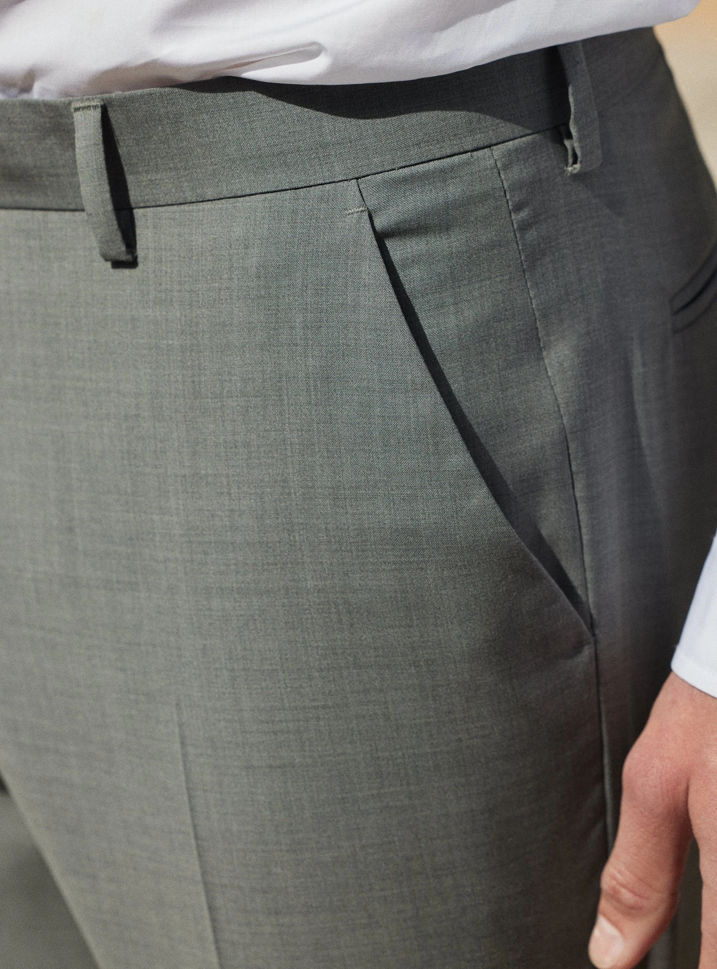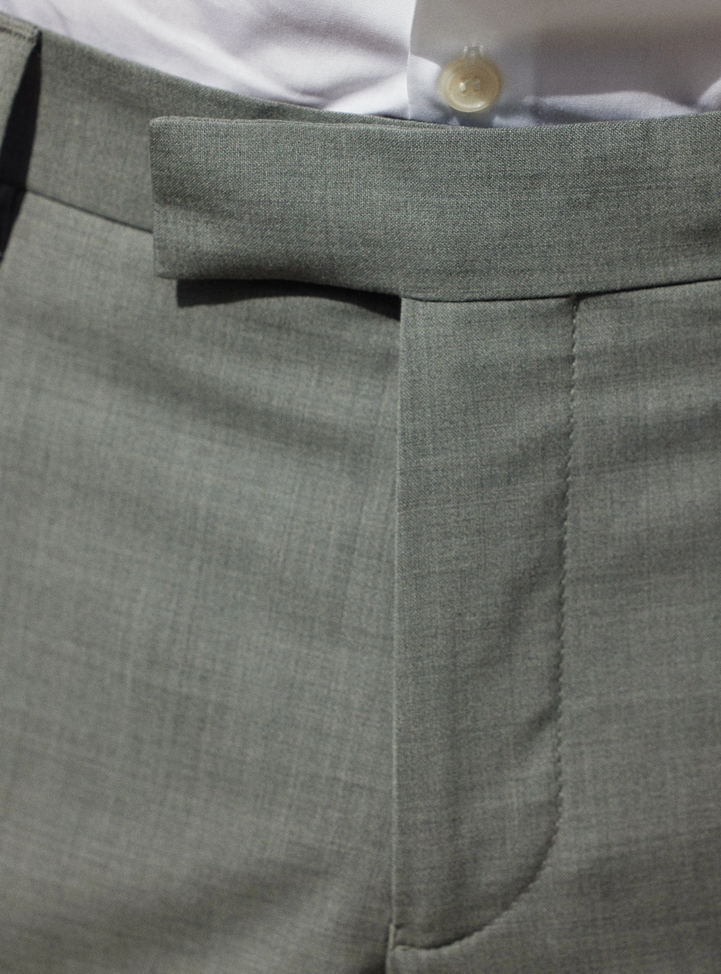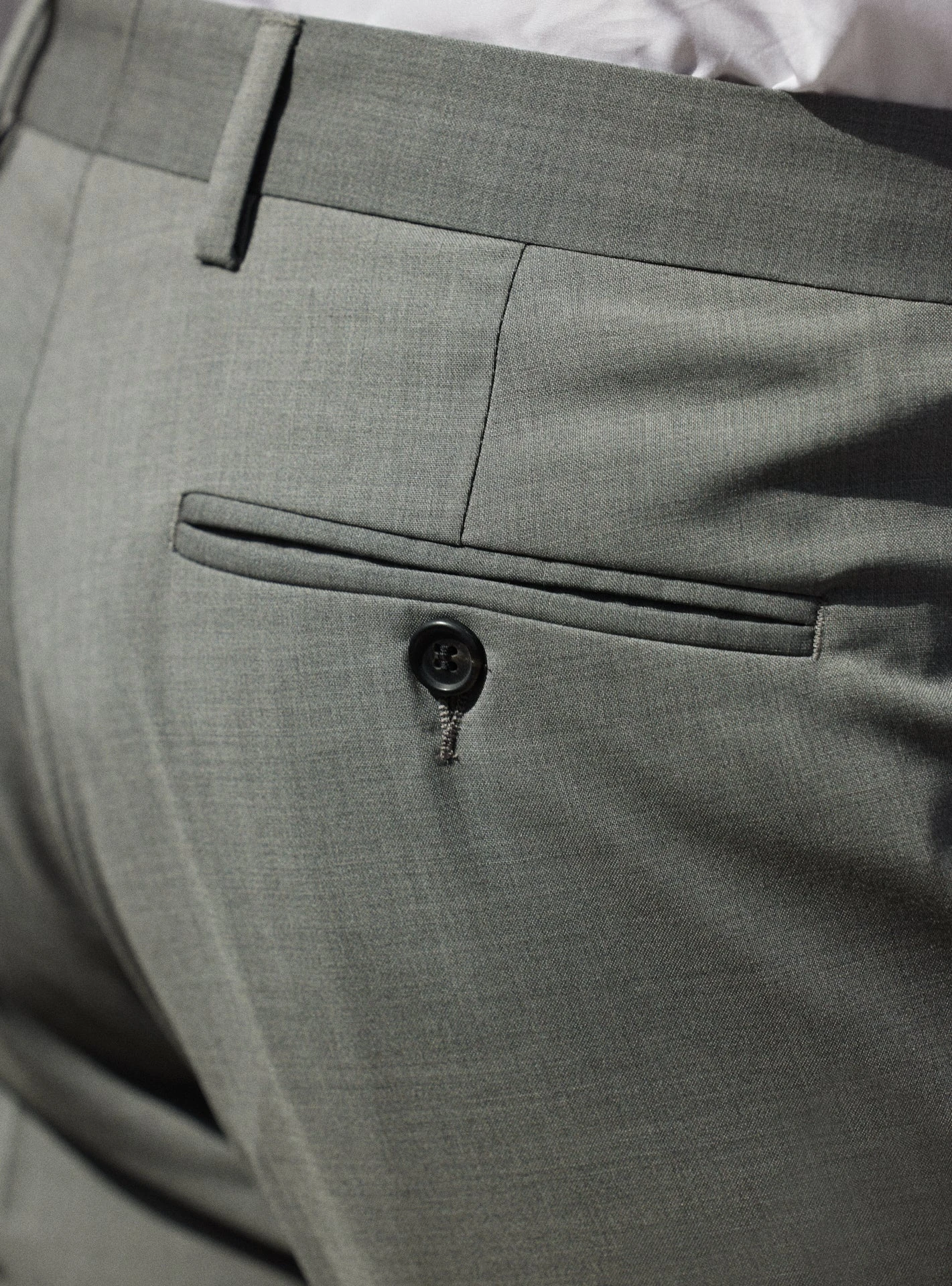 Pantalon de costume sans pince doté d’un pli cassé et d’une finition à la taille appelé « hausse de ceinture » qui confère un look impeccable et assure un maintien sans égal. Confectionné à partir de laine vierge, il se décline en gris pour s’accorder à la veste Jones.