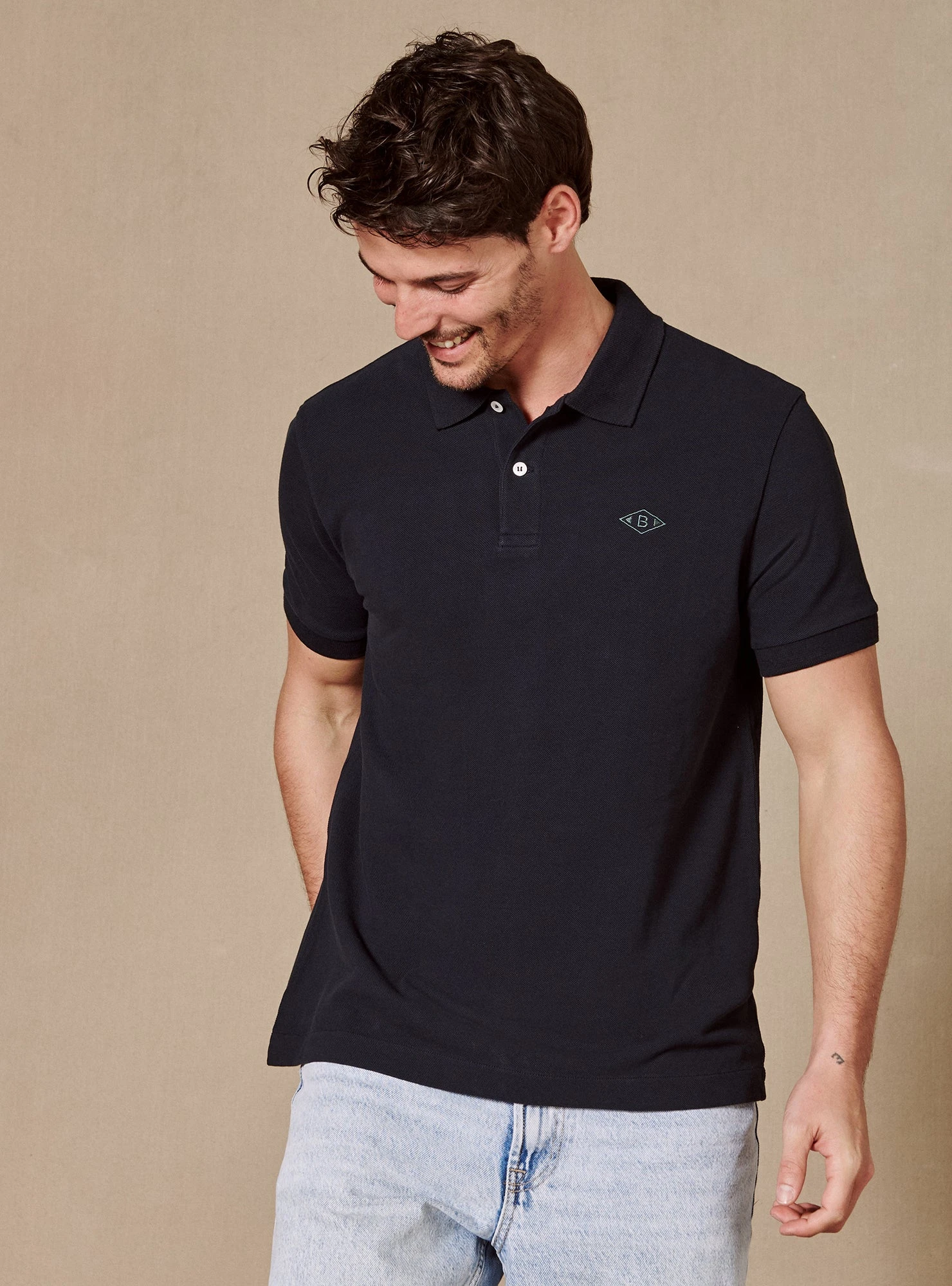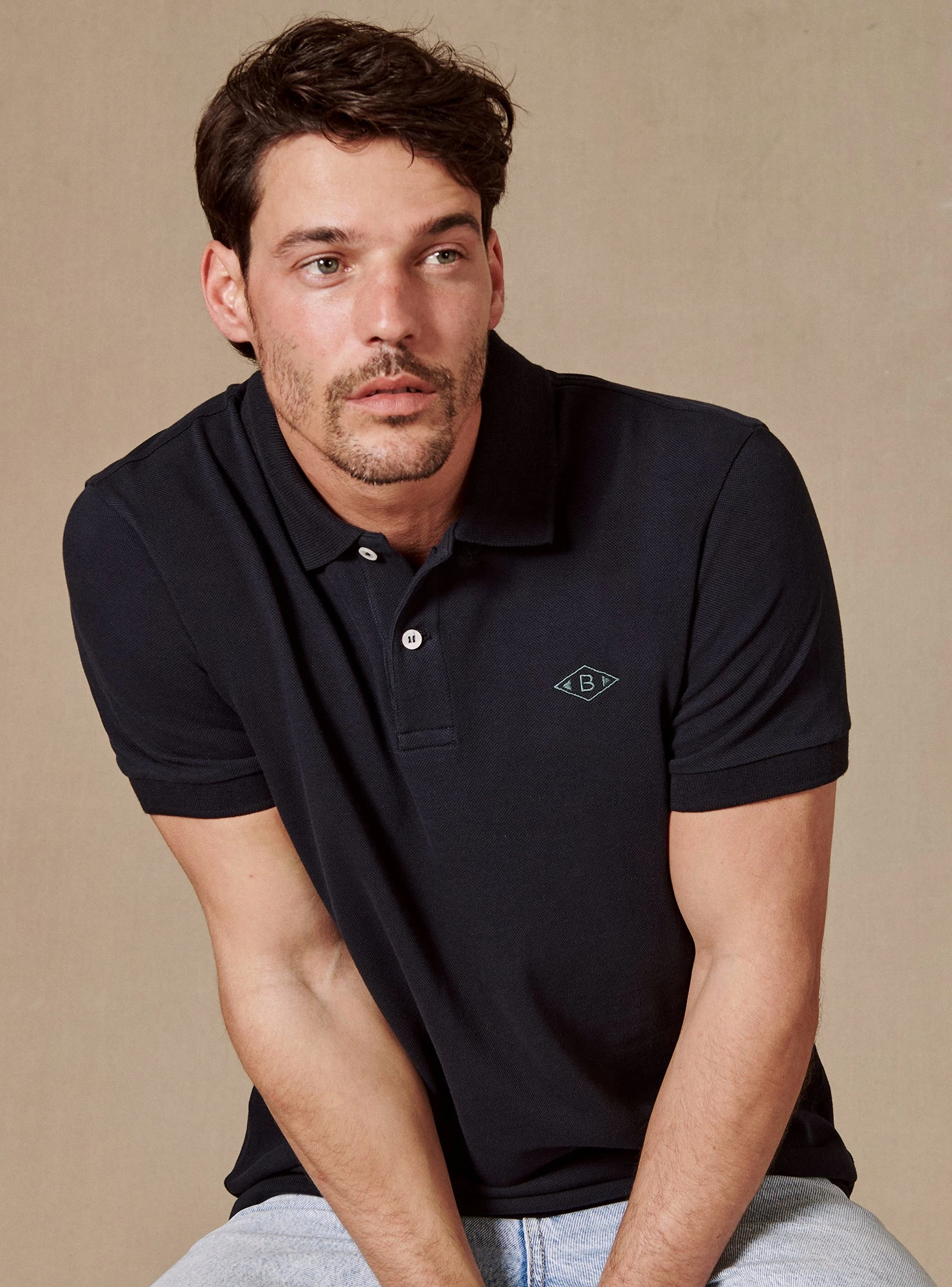 L’indémodable Polo en piqué de coton bio ultra doux se décline dans un coloris marine avec le logo « B » brodé à la poitrine pour accentuer son côté sportswear.