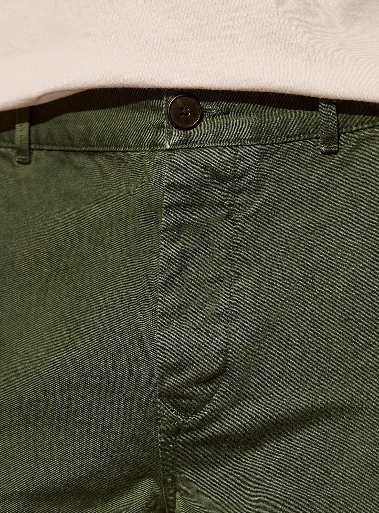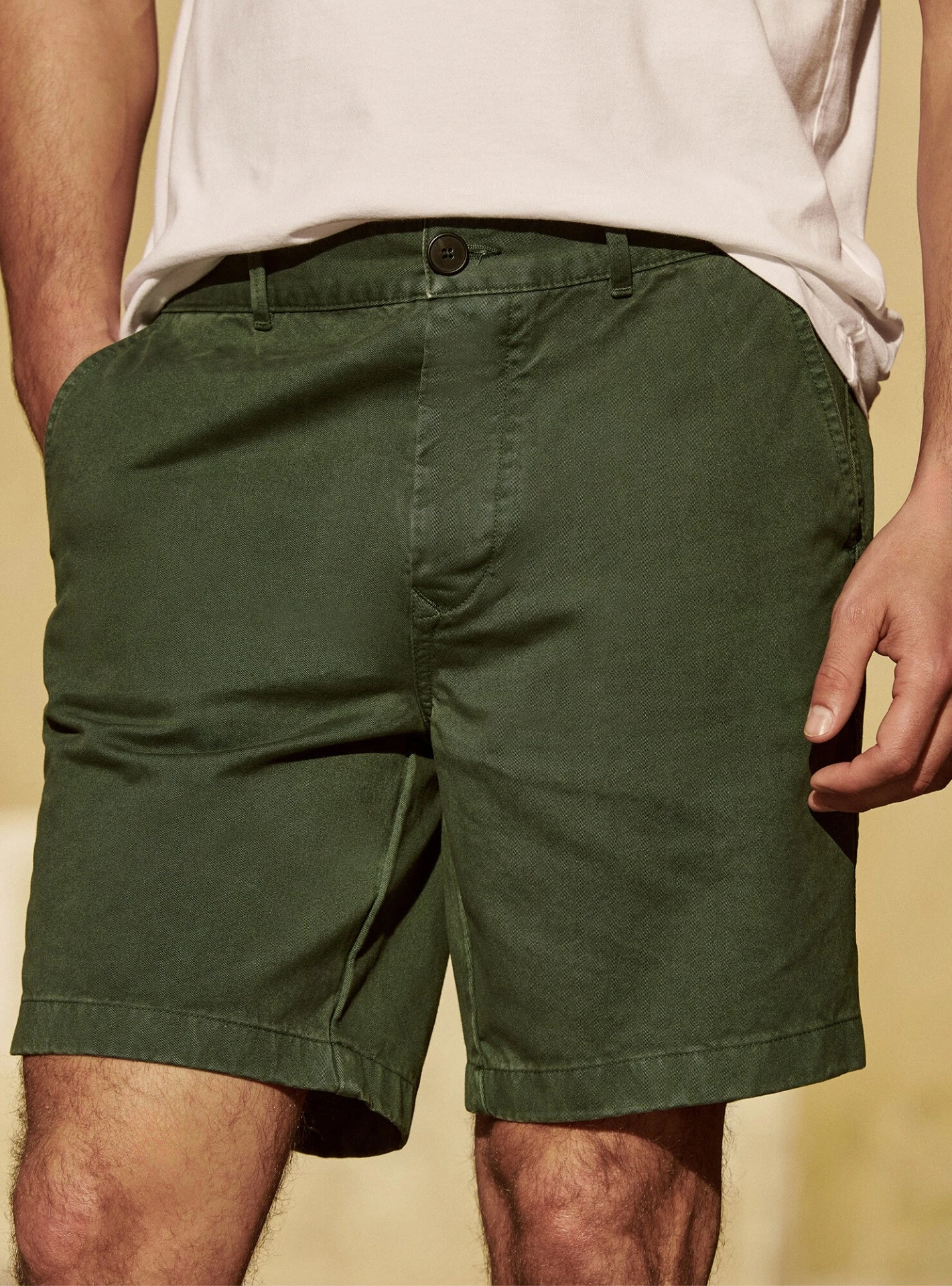 Inspiré des anciens uniformes militaires britanniques, le short Hanks est coupé dans une gabardine de coton robuste. Sa coupe droite et légèrement ajustée en font une pièce passe partout, à la ville comme à la mer.