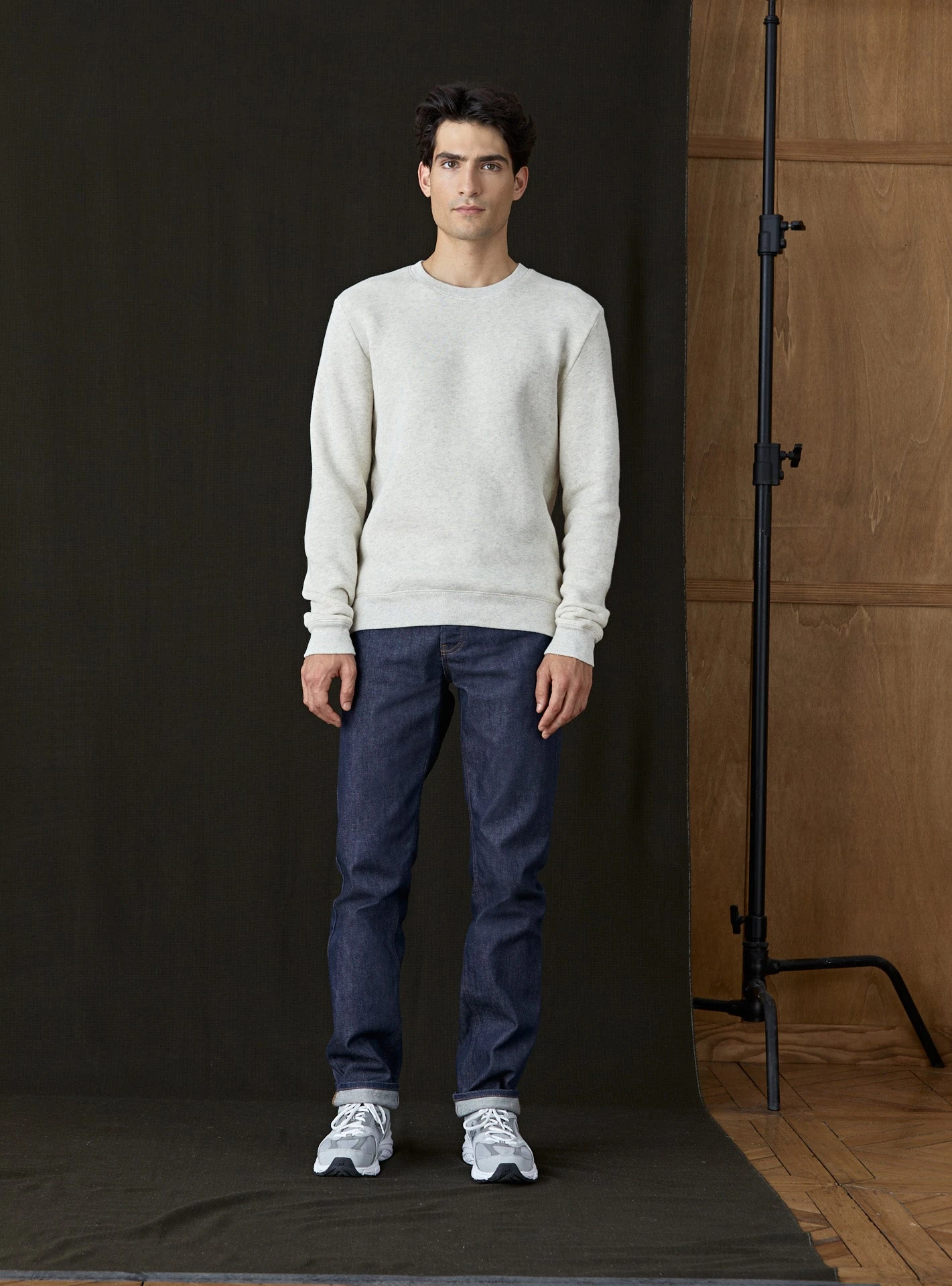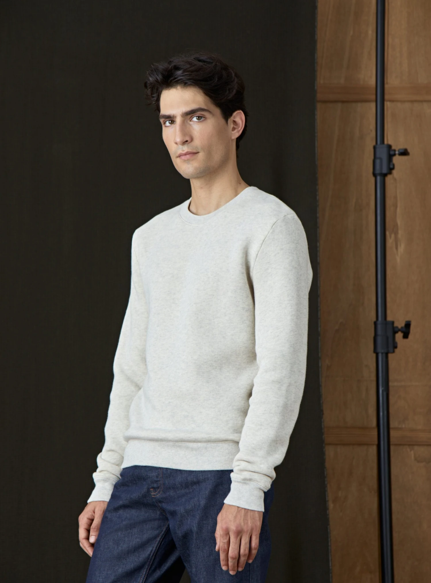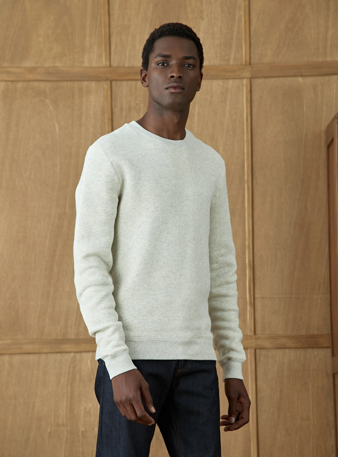 Le sweat classique en molleton Elliot se réinvente dans un beige chiné pour varier les styles à l’infini.