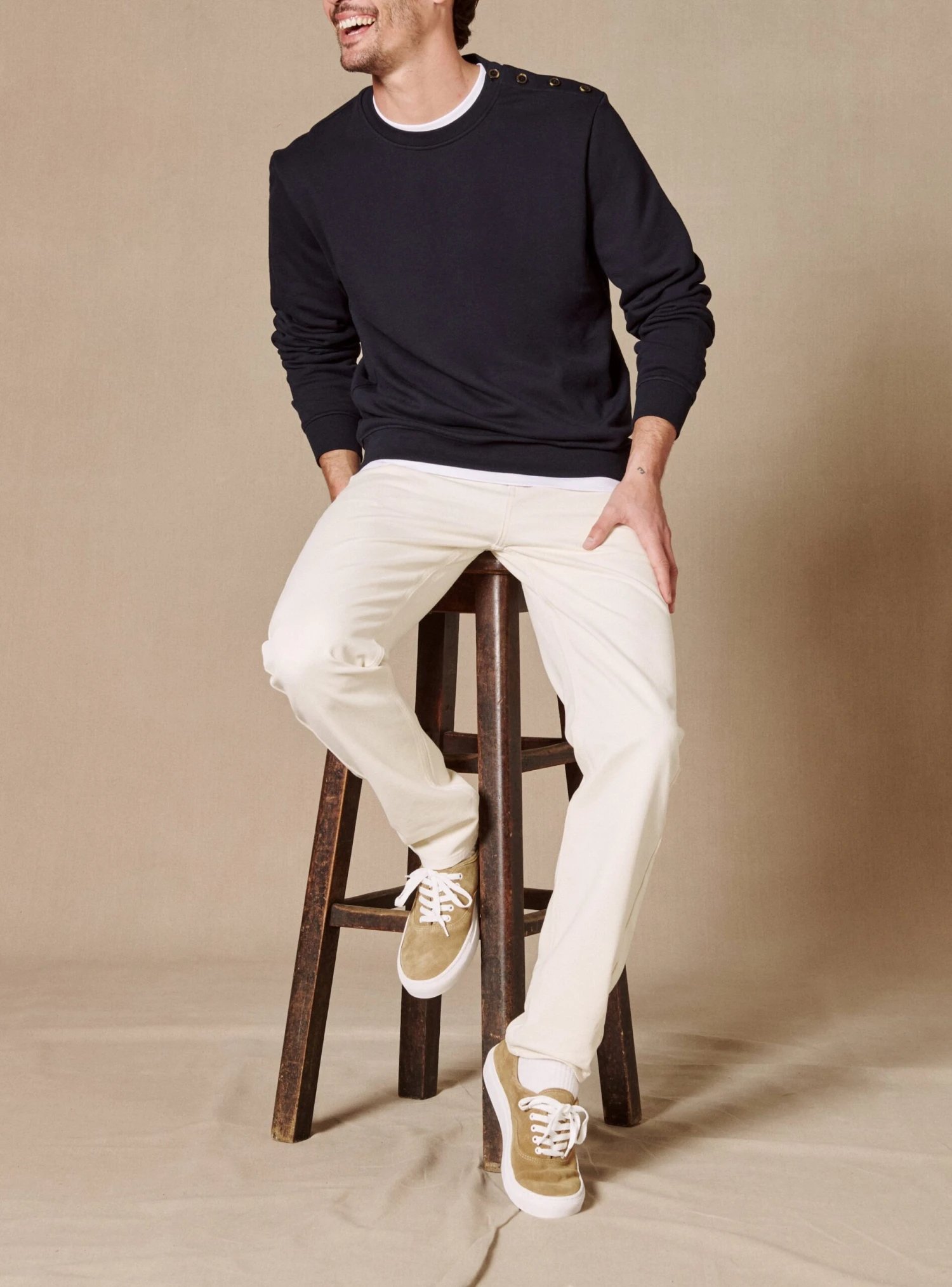 Quand le chic parisien rencontre la pièce sportswear par excellence. Le détail qui fait la différence : les 4 boutons sur l’épaule gauche qui donne une touche d’élégance à ce sweat col rond au style décontracté.