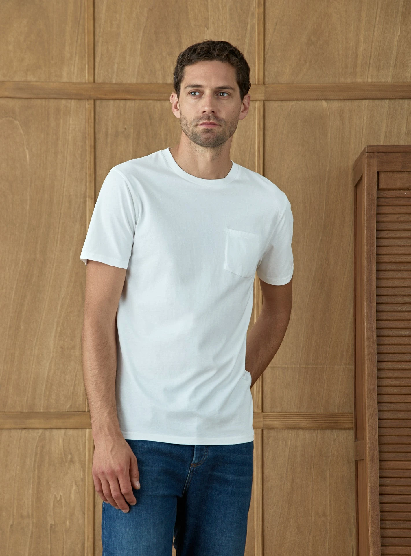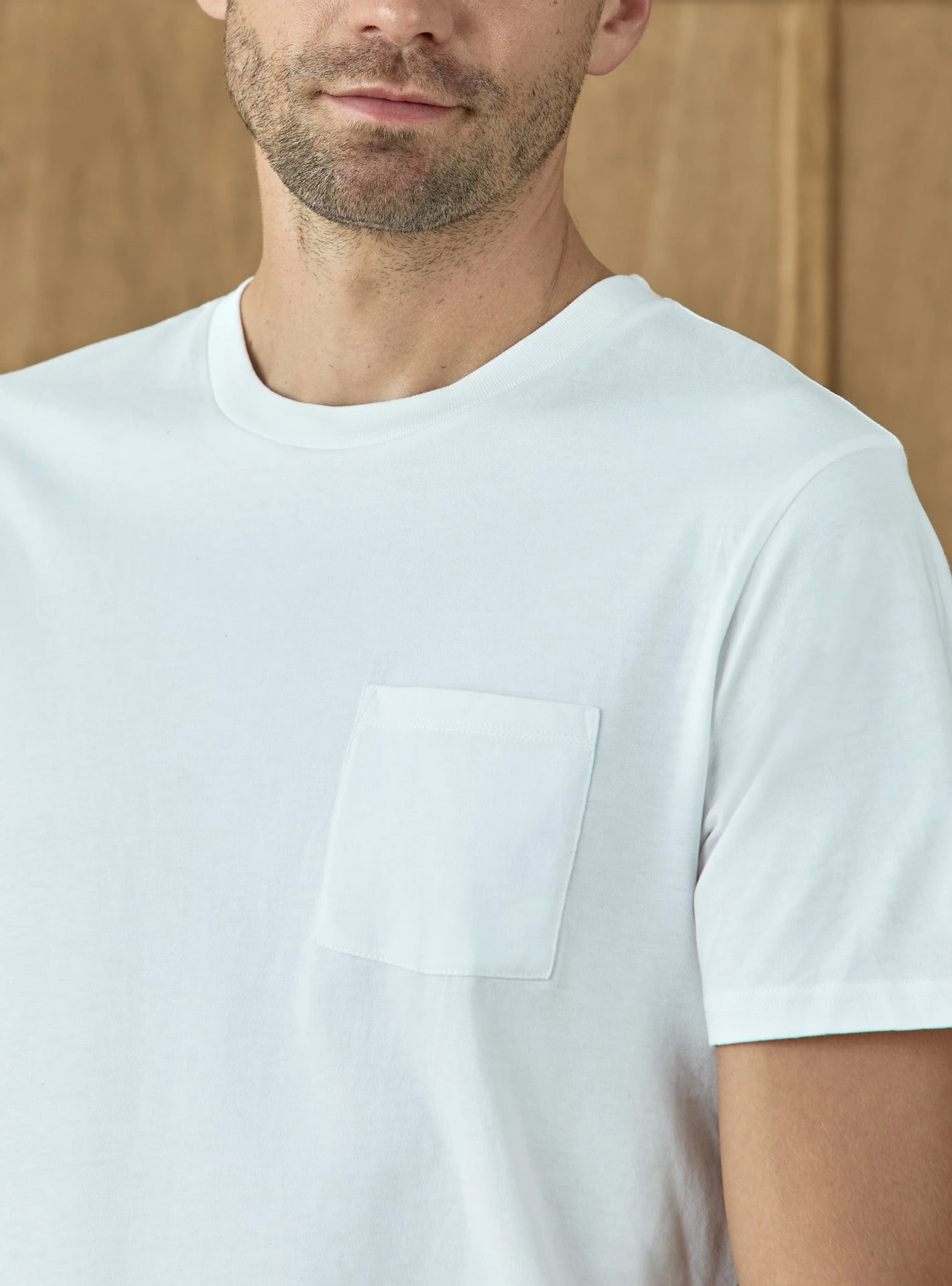 Incontournable du vestiaire, le t-shirt s’agrémente d’une poche poitrine aux accents rétro.