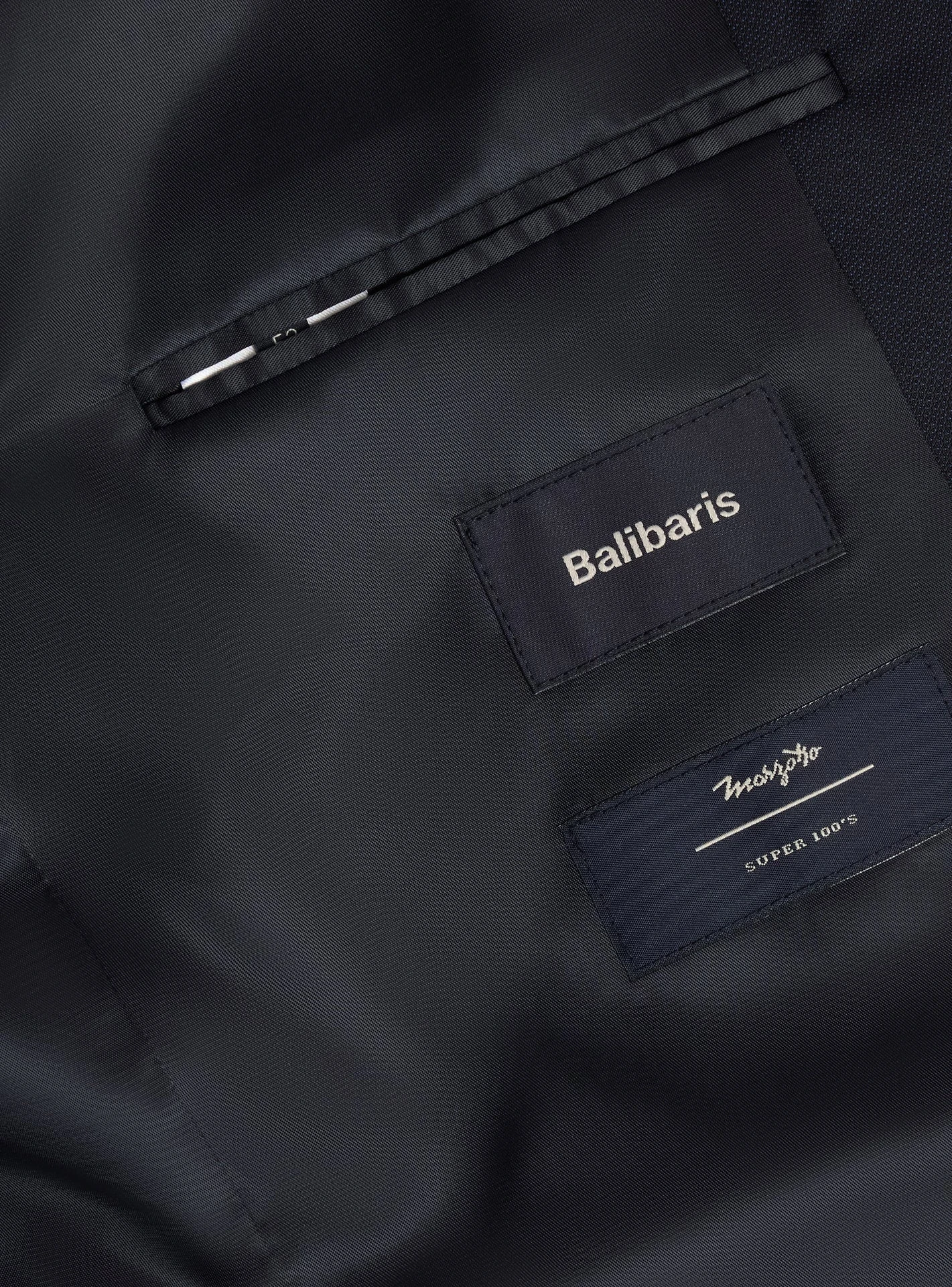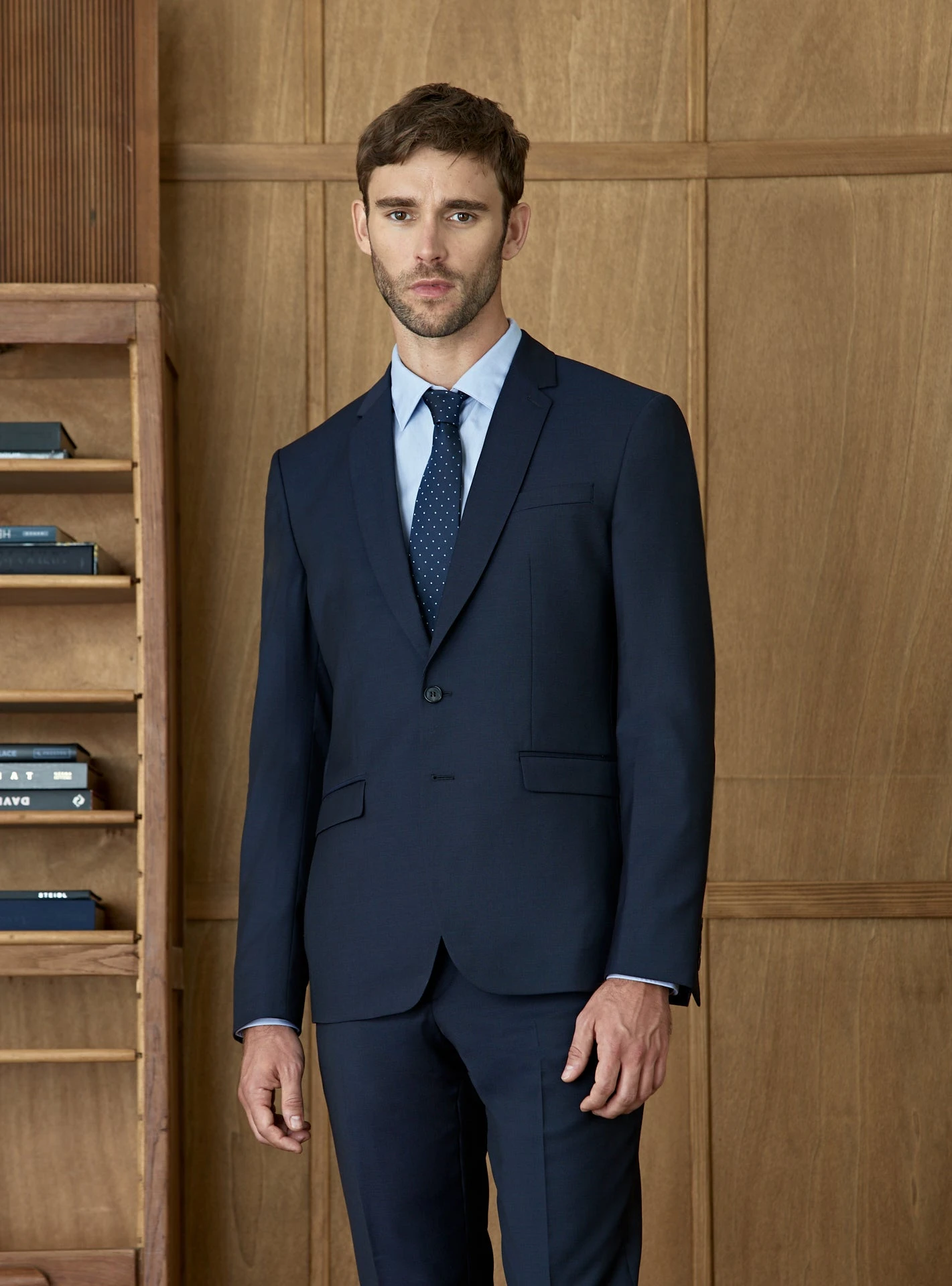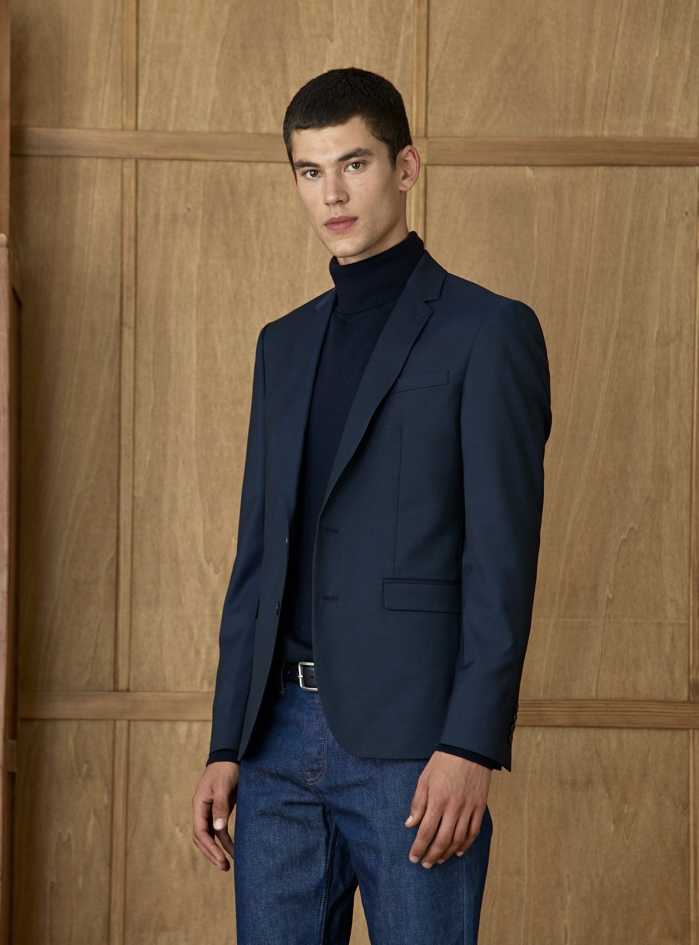 Déclinée dans un motif caviar navy surpiqué, la veste de costume Gekko structure la silhouette en subtilité tout en garantissant un confort au porté.