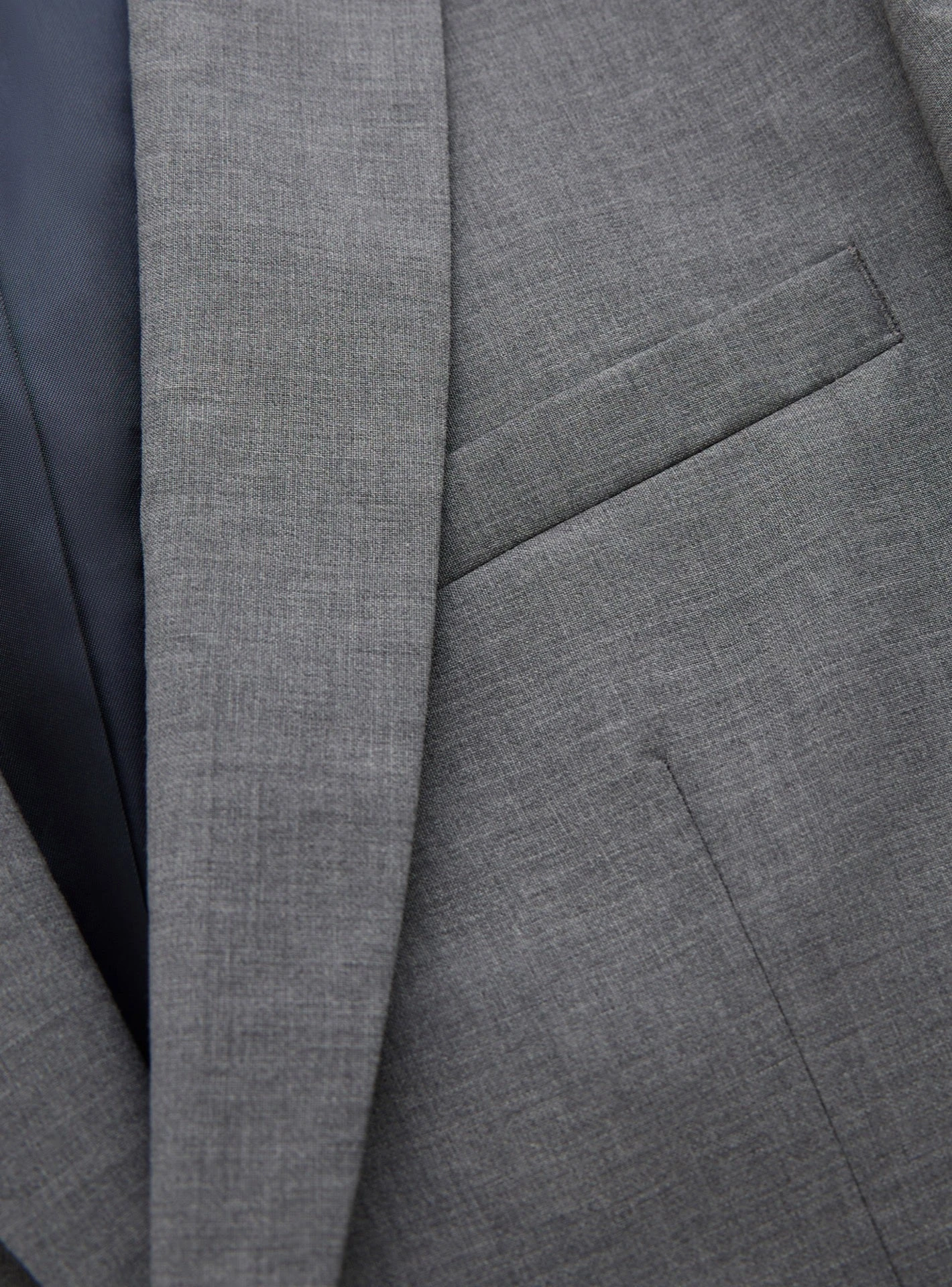FABRICATION SEMI-TRADITIONNELLE : Sur le revers et le plastron, nos vestes de costumes reprennent les techniques de fabrication traditionnelles : le semi-entoilage. En d’autres termes, un fin plastron en crin de cheval est cousu Ă l’intĂ©rieur de la veste, ce qui lui assure un maintien naturel.